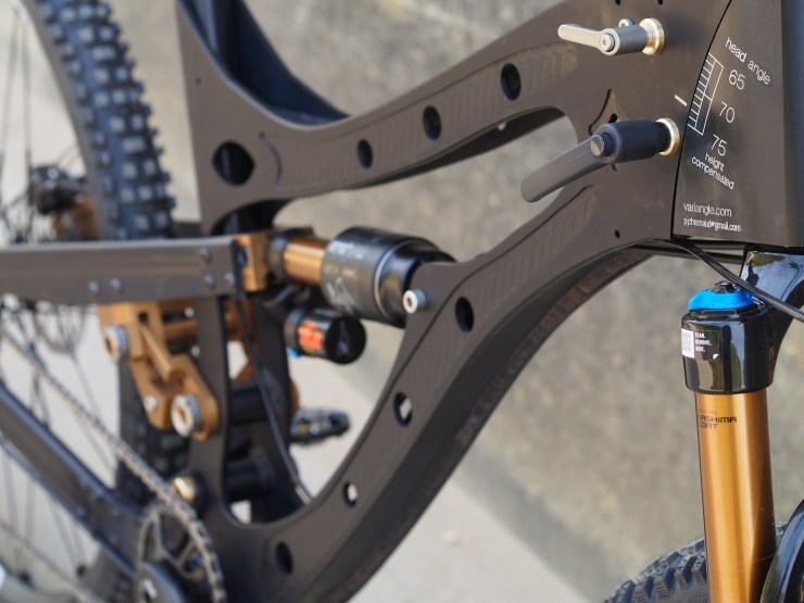 rapid change geometry achieved via a 4 start leadscrew and needle roller thrust bearings which allows the rider to quickly adjust whilst on the move. Each turn of the handle gives a 2 degree change in the geometry. Ride height stays the same throughout the range of adjustment.